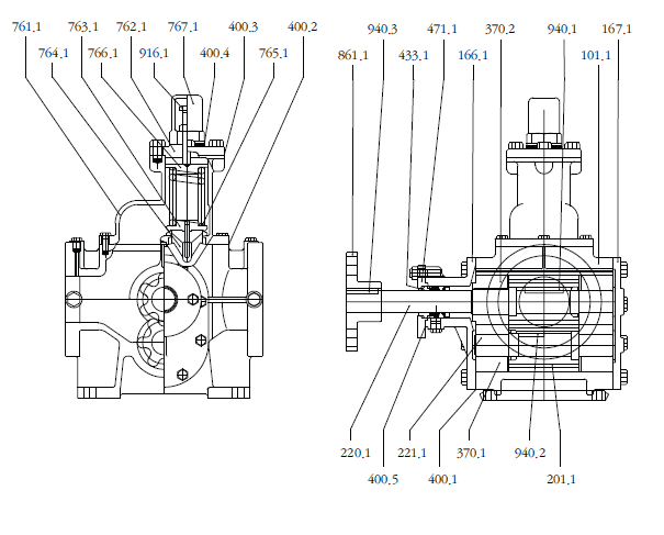 | 201.1 | GEAR | 2 | CARBON STEEL | 764.1 | VALVE SEAT | 1 | BRONZE |